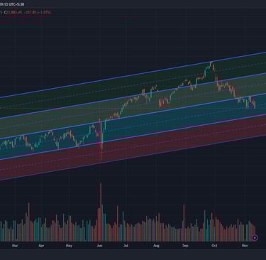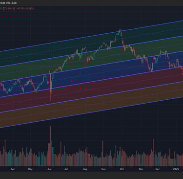 Above is the chart of NIFTY in November, 2024. I constructed a parallel price channel for NIFTY 50 by identifying key support and resistance levels. The primary objective was to outline potential pathways in which the index could trade in the coming months.